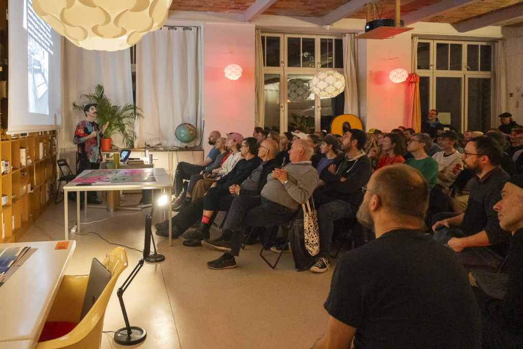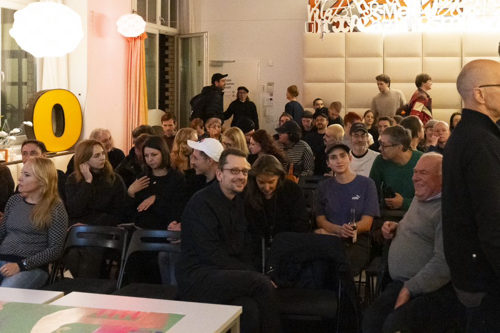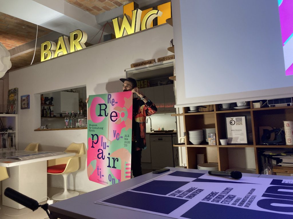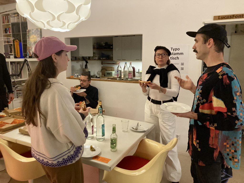 An diesem Donnerstagabend durften wir Besuch aus der Schweiz begrüßen, genauer gesagt von Dafi Kühne aus Zürich! Einige Minuten vor Beginn war der gut bestuhlte Raum im Studio bei LucasFonts noch recht leer, doch plötzlich betraten alle auf einmal den Raum und die Plätze waren in kurzer Zeit belegt. Viele altbekannte Gesichter waren dabei, und es fanden auch einige Besucher·innen zum ersten Mal ihren Weg zum Typostammtisch.