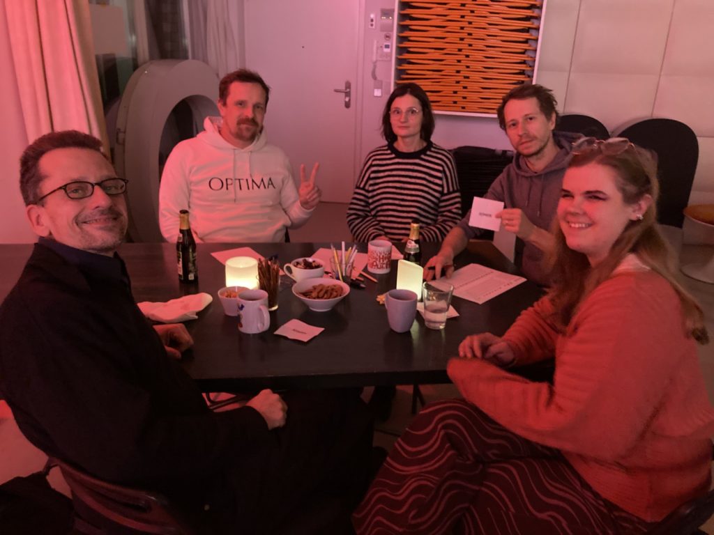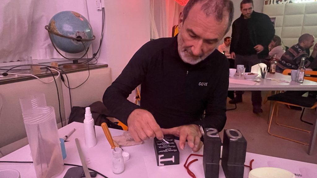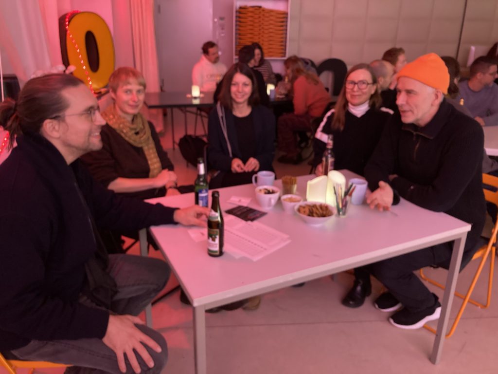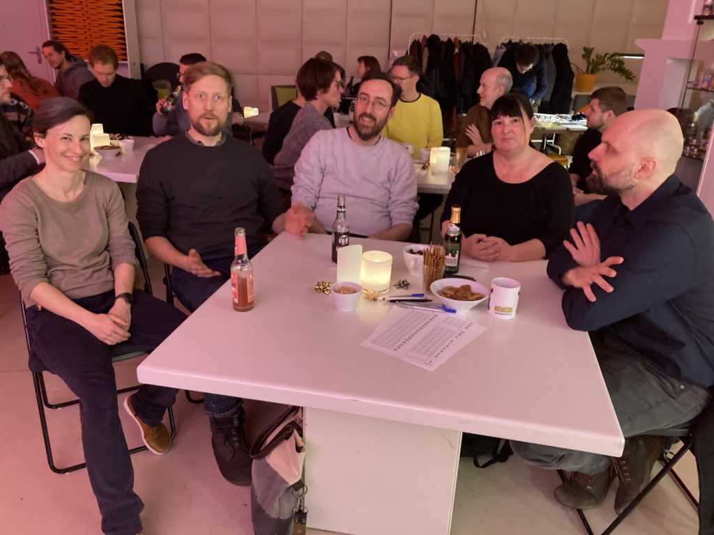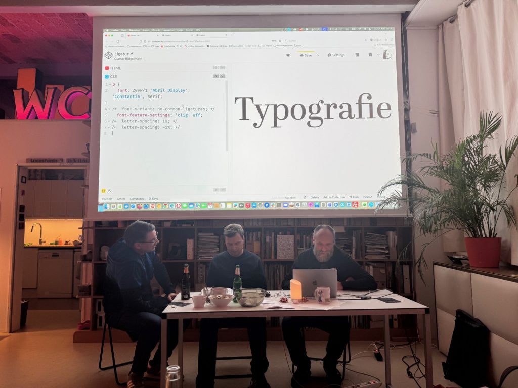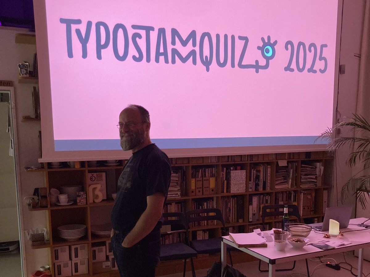 Für das Typostammquiz 2025 hat das erstplatzierte Team der Ausgabe 2024, bestehend aus Gunnar Bittersmann, Tilmann Hielscher, Martin Baaske, Amélie Bonet und Martin Majoor im Vorfeld gemeinsam Fragen erdacht. An diesem Novemberabend nehmen uns Gunnar, Tilmann und Martin B. mit auf die Reise durch ganz verschiedene Gebiete der Schriftkundigkeit. In gemütlichem Licht bei LucasFonts mit Knabberkram und Glühwein raten 6 Teams à 5 Personen, ausgelost über – mal ganz was Neues – Gewürze und Geschmacksrichtungen (Team Zucker, Team Rosmarin, Team Kümmel – you get the idea). Die Teams beantworten Fragen beispielsweise zu folgenden Themenkomplexen: Star Trek, dem Buchstabenmuseum, Ligaturen, InDesign Feature Support (kontroverses Thema, wie sich noch herausstellen wird), CSS, Unicode, Urheber·innen von Schriften, Alphabettes, undsoweiterundsofort.